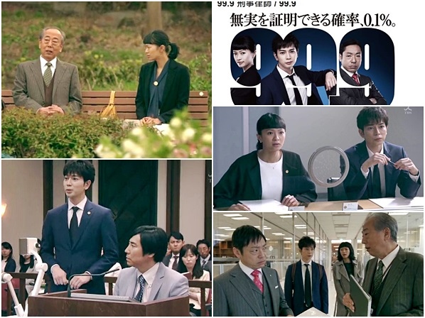 【99.9不可能的翻案】裡多商業案。斑目所長(岸部一德)老接下一些不簡單的案子,就是故意的。他看出深山(松本潤)不聽勸,總按照自己的方式查案。委託人有沒有罪,不是深山要的重點,他要的是「真相」。本來以委託人利益為上處理案件的主管佐田(香川照之)也漸漸被影響,就如很多日本行業劇裡的角色正派認真居多,就算走歪,也能慢慢被主角導回正道,何況本來就是「純正」的立花律師(榮倉奈奈)。明明所長就想借力使力,借的就是深山這種新人正直的衝勁和力量。
