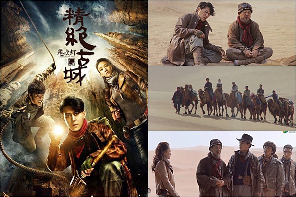 有意思的事,古墓劇通常都不會讓主角們因此上地發財,有各種原因不該打擾。日本軍寨劇情裡,老胡跟胖子因小祖宗起了惻隱心。潘家園大金牙(岳暘)嫌他倆生手呢!下回下去收東西,得學點門道長點知識,才會拿「好東西」。我笑了。於是,大金牙把他倆推薦給新疆考古隊陳教授(楊新鳴),領薪水,跟著去探險。美國華僑Shirley楊雪莉(陳喬恩)資助這行動的老闆,她想找當年沒能活著回去的父親走過的路,前往新疆「精絕古城」。終於把三位主角湊在一塊兒了。