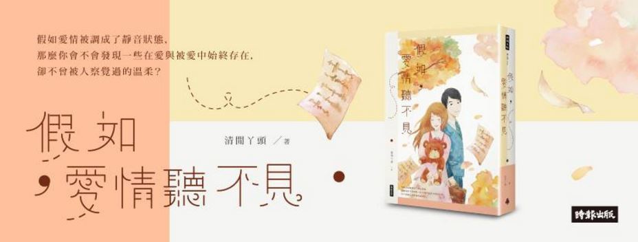 所以,一本看書名就能猜到八九不離愛情,容易閱讀的新小說,打開是輕鬆愉快的,想看看充斥著影劇書市網路滿滿的相同題材裡,作者清閒ㄚ頭如何能引起出版注意?這點讀者挑釁的私心還是有的。【假如愛情聽不見】,很好猜,果然有個聽不見的主角,暖男,只要看到書裡寫「背對」著他說話,他無法察覺有人車靠近,這個人就讓人心疼。